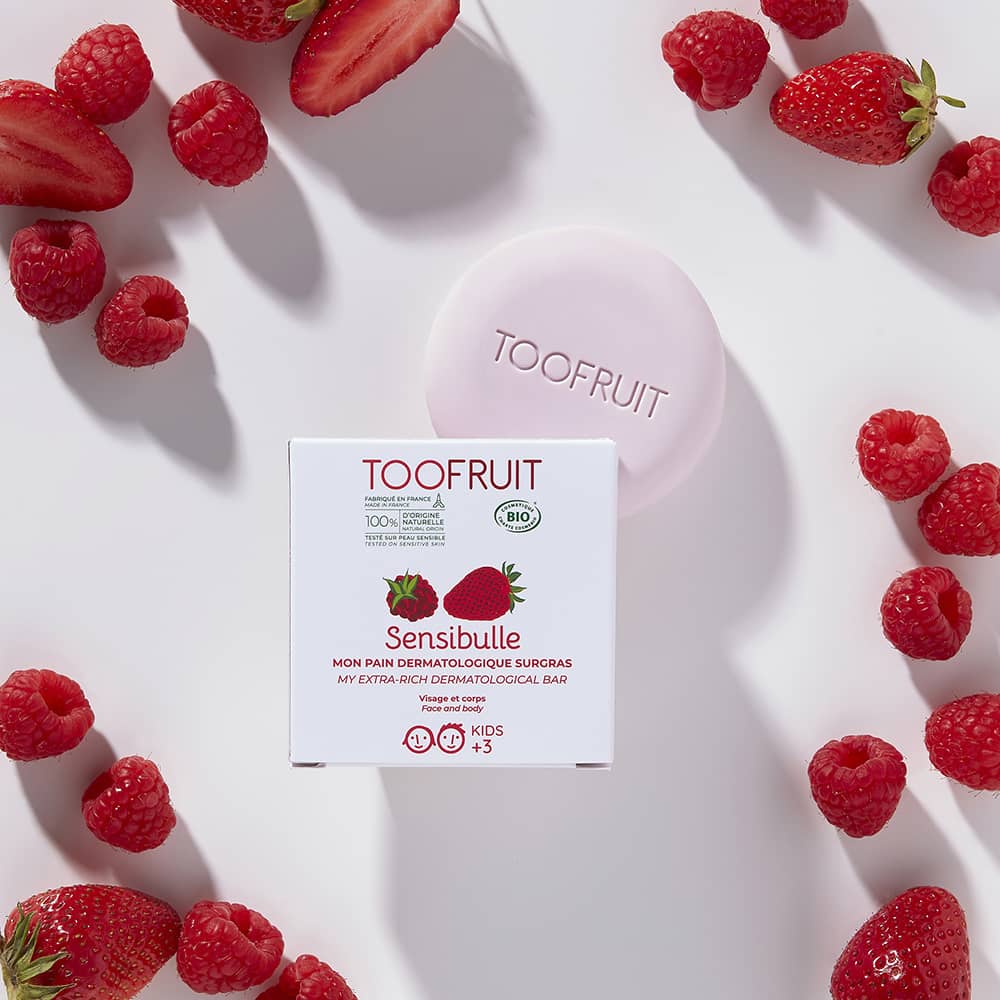 Erityisesti lapsille suunniteltu, sertifioitu luonnonkosmetiikan saippuaton ja sulfaatiton puhdistuspala. Puhdistaa herkän ihon kuivattamatta, ei tee ihosta kiristävää. Sheavoita, manteli-, kookos- sekä risiinisöljyä sisältävä kiinteä pesupala ravitsee ja pehmentää ihoa. Tuoksuna herkullinen, kevyen marjainen mansikka-vadelma.